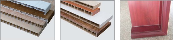 該生產線專用于寬幅PVC異型材生產線、木塑發泡門板、裝飾板擠出生產。生產線具有產量大,擠出穩定,發泡倍率高等優點?缮a各種裝 飾類制品,用途廣泛。制品表面硬度高,光滑平整,比重可控制在 0.6-0.9kg/m3之間。
