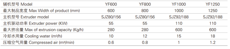 主機選用SJZ65/132、SJZ80/156及SJZ92/188Z錐雙擠出機,根據制品的寬度規格,選擇不同的輔機。