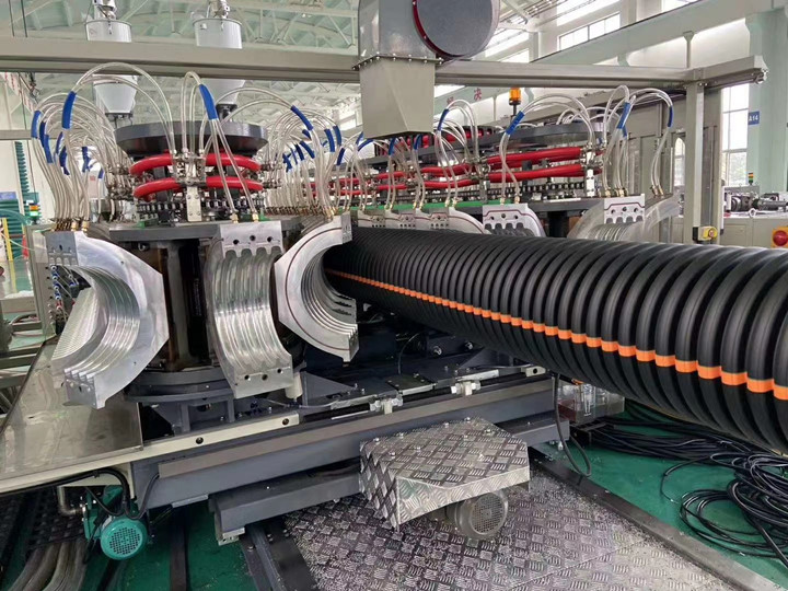 新設計的封閉式成型機,采用專用的成型鋁模塊高效冷卻系統,大幅度提高波紋管制品生產中的冷卻效率;