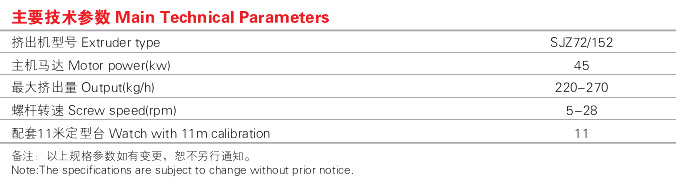在高速塑鋼型材生產中,當常規SJZ65/132擠出機產量不能滿足生產需求,又感覺SJZ80/156錐雙擠出機的能耗太大而且擠出不穩定時,便可以用SJZ72/152擠出機來替代SJZ65/132和SJZ80/156錐雙擠出機使用,即能滿足產量需求,又沒有提高太多的能耗。尤其在4-6m/min的高速塑鋼型材生產線中,SJZ72/152擠出機的能耗優勢便能充分的體現出來。
